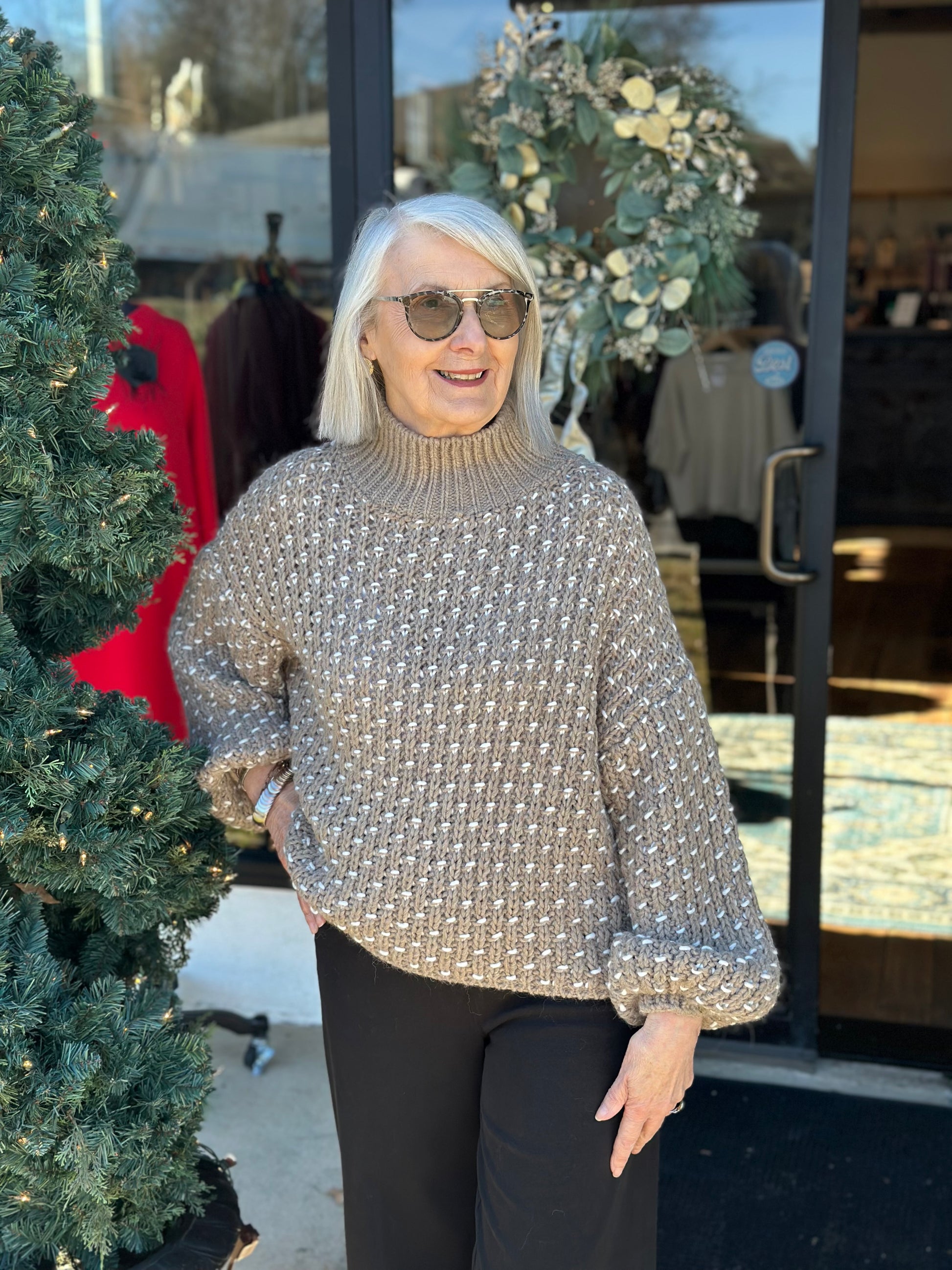 Contrast Stitch Crochet Swtr